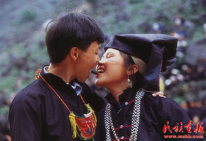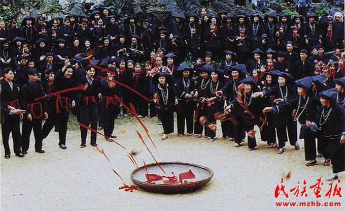 黑衣壯青年男女的戀愛熱情浪漫,一個個扔向簸箕的香包和紅帶子,不久就會連接兩顆年輕的心,引出一段醉心動人的愛情故事