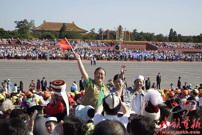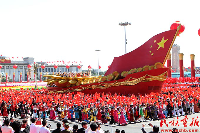 新中國成立以來,黨和國家始終堅持把馬克思主義民族理論同中國民族問題具體實際相結(jié)合,始終堅持把民族工作作為一項重大工作來抓,團(tuán)結(jié)帶領(lǐng)全國各族人民共同團(tuán)結(jié)奮斗,共同繁榮發(fā)展,開創(chuàng)了中國特色解決民族問題的正確道路,取得了舉世矚目的成就,積累了彌足珍貴的成功經(jīng)驗。2009年10月1日,在北京天安門廣場,20萬軍民以盛大的閱兵儀式和群眾游行歡慶新中國60華誕,圖為各民族學(xué)生參加“團(tuán)結(jié)奮進(jìn)”方陣群眾游行?!睹褡瀹媹蟆?009年第10期