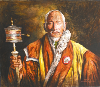 “我曾遇到過民主改革后重獲新生的翻身農(nóng)奴,他們的經(jīng)歷非??部?。對于他們來說,對給予他們自由的毛主席有著很深的感情。老一輩翻身農(nóng)奴為表達感激之情,便有了佩戴毛主席像章每天做祈禱的人。”索曼尼回憶著當初繪畫《永遠的懷念》這幅作品時的情景。