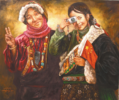 “以前畫畫時,對自己的最高要求就是畫得要逼真,把油畫畫得像一幅放大了的照片,而現(xiàn)在關(guān)注的是如何畫出能體現(xiàn)當代的畫面。西藏的美是無窮無盡的,我就想用繪畫的方式窮盡一生去追求,展現(xiàn)大美西藏?!比缃竦乃髀幔チ顺醭雒]時一味追求畫面質(zhì)感的匠氣,多了些許內(nèi)心對西藏這片熱土深層次的思考。他筆下的西藏是一片充滿生機的土地,濃墨重彩之間,既有對傳統(tǒng)和過往年華的回望和懷念,又在仿若不經(jīng)意間透過一個眼神、一抹色彩、一個小物件盡情詮釋活力和希望。