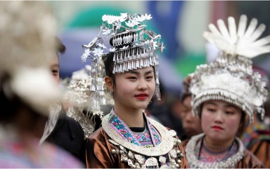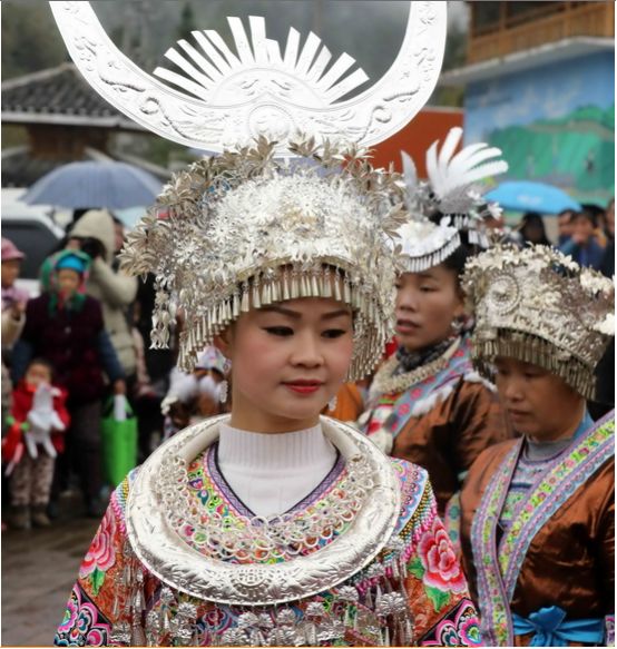 苗族頭飾主要是以銀飾為主。苗族女孩從學會走路開始,父母就會給女兒制作一套苗族民族盛裝和頭飾,苗族女孩一般6歲左右就可以參加每年的民族盛會,并且從小學習化妝技術(shù)。苗族的盛會主要集中在春節(jié)后,也叫坡會,就是山坡上的聚會,這一天苗族姑娘就會穿上珍藏已久的民族盛裝,戴上頭飾,把自己打扮的漂漂亮亮,參加蘆笙踩堂舞,展示自己的美麗一面。