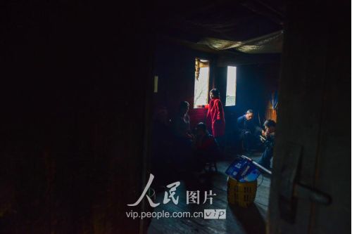 一般要到快過春節(jié)的時候,男方家才專門請人去接女方來洗糯米、打糍粑,新娘方能在夫家住上一夜;在來年農忙時節(jié),又接女方來幫忙,夜里仍不能在男方家留宿,幫完忙當晚即回去,只有待到女方有身孕后,新娘才到夫家長住。圖為11月16日夜,新娘潘芝銀家為準備婚禮,燈火徹夜長明。