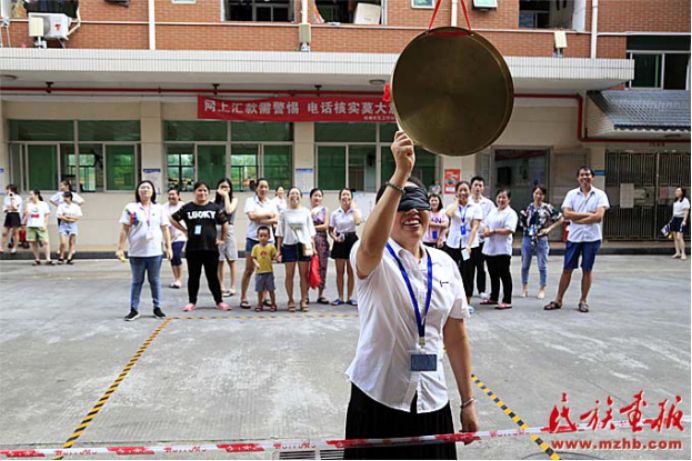 趣味運動會結合民族地區(qū)開展的傳統(tǒng)體育項目,以及趣味競技游戲等,展示了少數(shù)民族傳統(tǒng)體育特色,如盲敲銅鑼和高蹺便是利用了民族地區(qū)的一些傳統(tǒng)活動改編而來的,另外還有團隊協(xié)作的民族民間運動項目手毽、拔河和板鞋競速等。200余名各族群眾參加了這些帶有濃厚民族特色的運動項目。