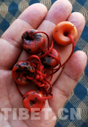珊瑚在藏語中稱為“曲如”,在邊貿(mào)市場中的數(shù)量甚至多于綠松石,而且以真貨為主。其中原因,可能也主要在于制作普蘭當(dāng)?shù)胤椥枰?,以及人們喜歡將其作為戴在脖子上的項鏈飾品的緣故。