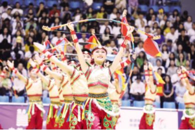 ?、拗貞c隊表演項目《土家銅鈴勁逮逮》 王京廣攝