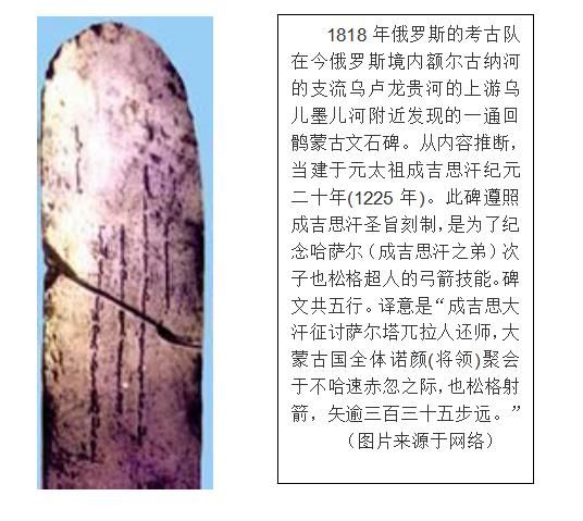 在成吉思汗叱咤風云的時代,中國北方與宋王朝并立先后存在過西夏、遼、金、蒙古等少數(shù)民族政權。這些政權的主體民族,西夏國的黨項、遼國的契丹、金國的女真、蒙古國的蒙古,都有本民族語言,最初都沒有本民族文字。建立政權后,為了適應政治和文化發(fā)展的需要,他們有的創(chuàng)立了本民族文字,如西夏文、契丹字、女真字等等。回鶻西遷之前,與蒙古共同生活在蒙古高原,他們都是游牧民族,經濟文化與許多相似性,語言上同屬阿爾泰語系,分屬蒙古語族和突厥語族,因此蒙古語與維吾爾語的一些日常用語和詞匯是相同或相近的。如黑(哈喇)、黃(霞喇)、金(阿拉泰)在蒙古語與維吾爾語中發(fā)言是一樣的。成吉思汗命塔塔統(tǒng)阿用回鶻字母創(chuàng)建蒙古文字,就是在這樣的時代背景和回鶻、蒙古的文化聯(lián)系上產生的?,F(xiàn)存用回鶻式蒙古文寫成的文獻中,最早的是1225年的《也松格碑》(成吉思汗石碑)。