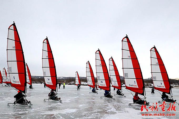 2020年1月2至3日,東極船奇·全國冰上帆船公開賽在黑龍江省撫遠市濱江公園黑龍江水域舉辦。來自全國8個城市的帆船愛好者以及撫遠當(dāng)?shù)氐纳习倜罕妳⒓恿舜舜伪荣悺?/p>