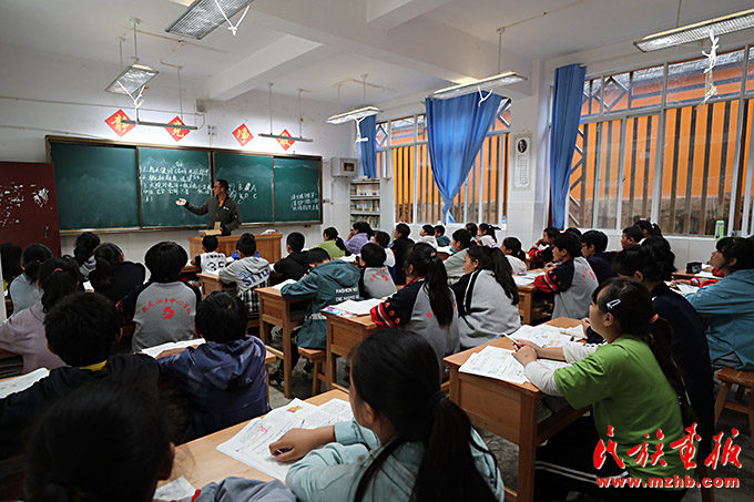 “對(duì)于一個(gè)在北平住慣的人,像我,冬天要是不刮大風(fēng),便覺(jué)得是奇跡;濟(jì)南的冬天是沒(méi)有風(fēng)聲的?!弊哌M(jìn)學(xué)校初中部,朗朗書聲立即傳入耳中,七年級(jí)一班學(xué)生正在老師的帶領(lǐng)下大聲朗讀我國(guó)著名作家、劇作家、小說(shuō)家老舍創(chuàng)作的散文《濟(jì)南的冬天》。獨(dú)龍江九年一貫制學(xué)校校長(zhǎng)楊四洋對(duì)記者說(shuō):“習(xí)近平總書記曾深刻指出:少數(shù)民族學(xué)好國(guó)家通用語(yǔ)言,對(duì)就業(yè)、接受現(xiàn)代科學(xué)文化知識(shí)、融入社會(huì)都有利。所以我們學(xué)校從成立之初就開始推行國(guó)家通用語(yǔ)言文字教育,如今每一個(gè)在校學(xué)生都能講出一口流利的普通話。獨(dú)龍族聚居地地處深山峽谷,自然環(huán)境惡劣。學(xué)好國(guó)家通用語(yǔ)言文字對(duì)我們的孩子尤為重要,這樣才能更好地建立與外界溝通的橋梁。”