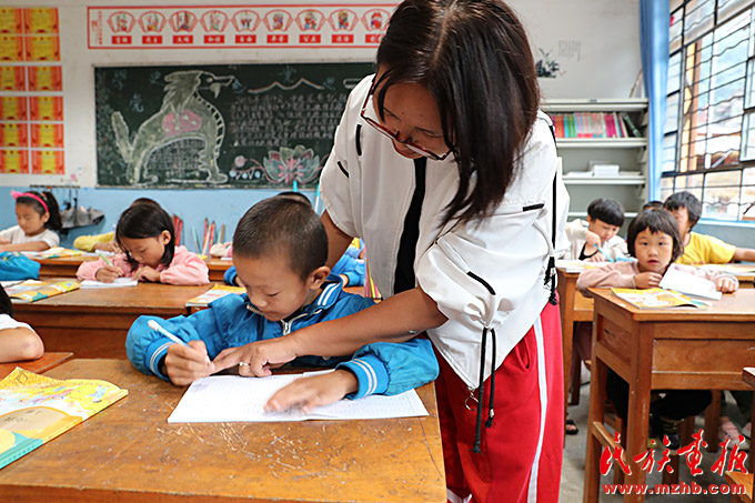 在學(xué)校行走,一面醒目的墻上刻著校歌《有夢(mèng)就有希望》。校歌里寫到:“我們心存夢(mèng)想,我們志存高遠(yuǎn),我們肩負(fù)著振興民族的重任?!豹?dú)龍族的孩子和其他民族的孩子們站在了同一起跑線上,享受著平等的教育權(quán)利。解軍畢業(yè)于西南大學(xué),2016年起在獨(dú)龍江九年一貫制學(xué)校任教。他和其他老師們都有一個(gè)執(zhí)著的信念,就是要讓獨(dú)龍族的學(xué)生走出大山、走向世界。從大山中走出去的他深刻領(lǐng)悟到學(xué)習(xí)國(guó)家通用語(yǔ)言文字的重要性。他說(shuō):“語(yǔ)言相通是人與人相通的重要環(huán)節(jié)。語(yǔ)言不通就難以溝通,不溝通就難以達(dá)成理解,就難以形成認(rèn)同。為了讓孩子們更好地追夢(mèng),我們一直努力推行國(guó)家通用語(yǔ)言文字教育。”