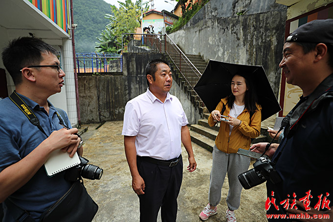 校長(zhǎng)楊四洋(左二)接受記者采訪。