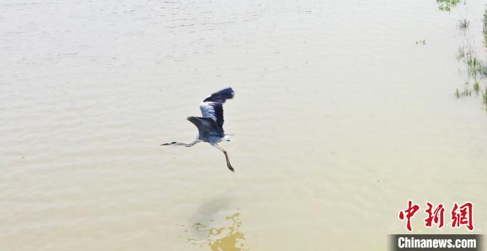 鳥兒在南宮湖濕地公園飛翔。 田威 攝