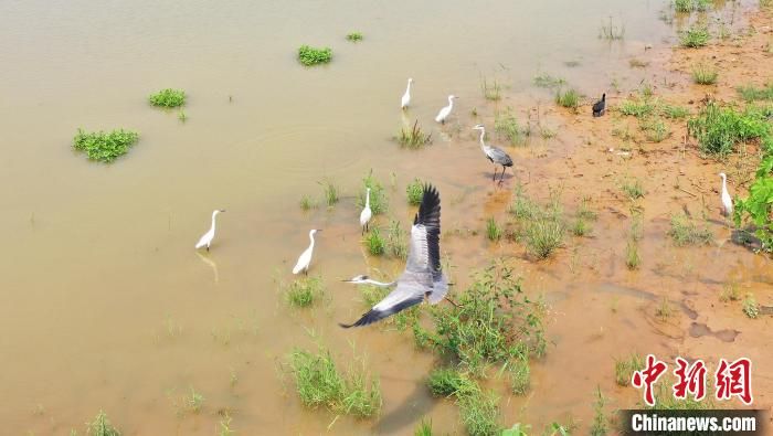 鳥兒在南宮湖濕地公園棲息?!√锿?攝