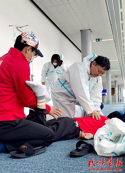 烏日根桑格利用在機(jī)場轉(zhuǎn)機(jī)時(shí)間,為國家柔道隊(duì)運(yùn)動(dòng)員進(jìn)行調(diào)整治療。