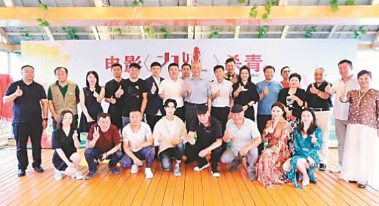 關(guān)機(jī)儀式上,電影《九妹》主創(chuàng)人員合影。