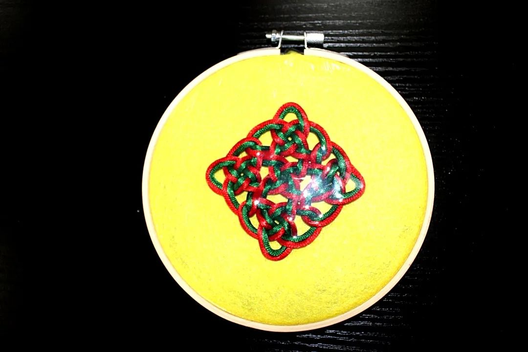首先要選定編結(jié)材料,設(shè)計(jì)好色彩方案,用的線材可以是多種,根據(jù)需要進(jìn)行顏色搭配。編完之后,要將結(jié)子抽緊定形,這是整個編結(jié)過程中最重要也最考驗(yàn)技術(shù)的步驟。繩結(jié)在編好、抽好之后,修的工夫也不能馬虎,而注重細(xì)節(jié)。