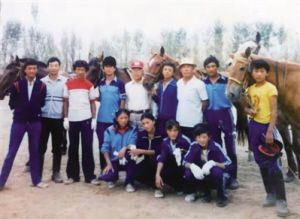 1986年,西藏有了自己專業(yè)的馬術(shù)隊(duì)(后排左四為現(xiàn)任西藏競技馬術(shù)隊(duì)領(lǐng)隊(duì)措東,站立者右二為現(xiàn)任西藏競技馬術(shù)隊(duì)教練單增)。