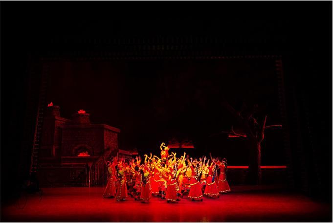 在手段創(chuàng)新上,主創(chuàng)人員在嚴格遵循南木特藏戲藝術傳統(tǒng)和戲劇原則的基礎上,設計了部分新的唱腔,使用了現(xiàn)代舞臺的舞美和聲光電手段,采用了26人組成的中型民族樂隊,從而營造出了全新的舞臺效果。在藝術手法上,還采用了以南木特藏戲手段表現(xiàn)西藏藏戲內(nèi)容的特殊表現(xiàn)形式,以戲中戲的重疊盡顯不同風格的藏戲風采,大大地豐富了表演手段和出彩看點,為觀眾提供了巨大的想象空間。