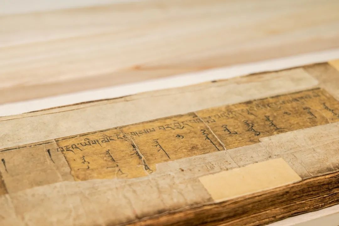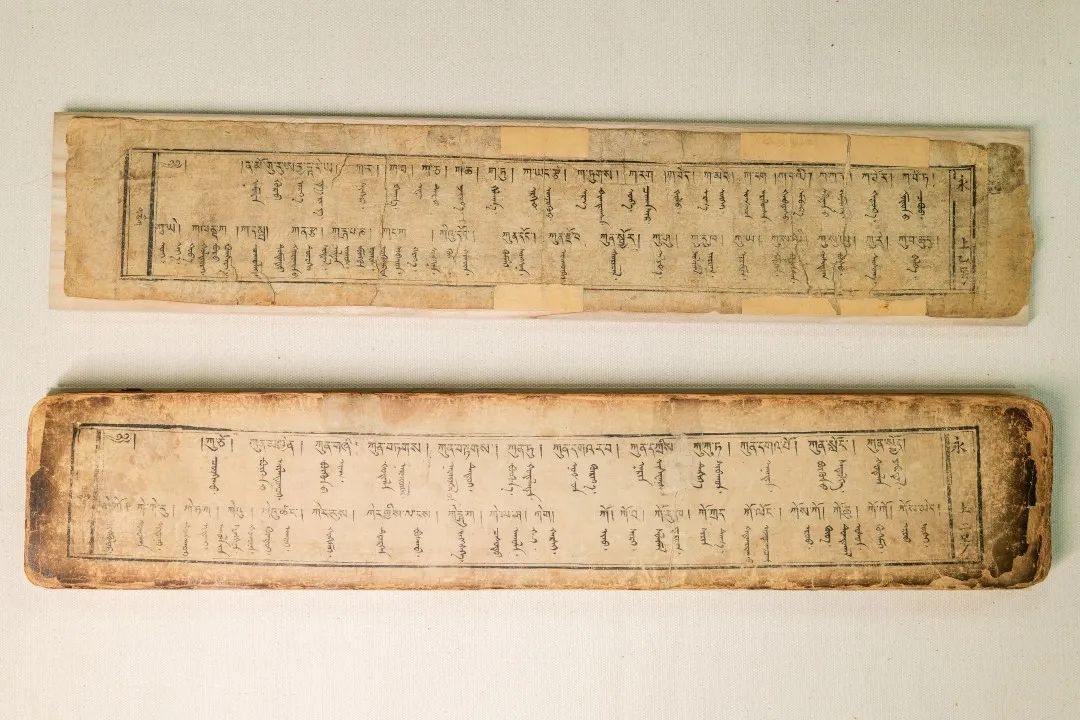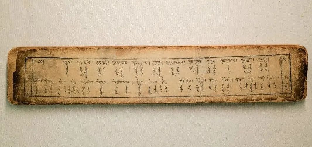 藏蒙對(duì)照詞典《詳解月光辭典》又稱《浩月輝映詞典》,該詞典由阿拉善拉隆巴阿旺丹德爾編著,清道光十八年(1838)北京嵩祝寺木刻本。1卷,139葉,頁面尺寸10.6×56厘米,版框尺寸7.5×49厘米,四周雙欄,梵來裝。每頁以藏蒙、藏蒙四行為階梯排列,每列35行,每行1字。頁面左側(cè)有藏文頁碼,右側(cè)有漢字《永》和漢文頁碼。