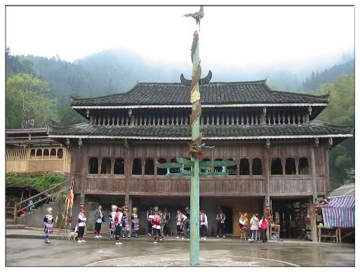 吊腳樓是苗族傳統(tǒng)建筑,是中國南方民族特有的古老建筑形式,樓上住人,樓下架空,被現(xiàn)代建筑學(xué)家認為是最佳的生態(tài)建筑形式。吊腳樓是苗鄉(xiāng)的建筑一絕,它依山傍水,鱗次櫛比,層疊而上。是苗族最具特色的建筑。每棟木樓分上下兩層,按木樓的大小不同,下層從2-6排不等,因房子建在山坡上,地勢不同。里層一排為短柱,外面一排為長柱,柱子的上截柱頭都鑿有“十”字眼,用粗方條連成整體,為了支撐木樓的重量,下層屋多選用粗大的老杉木作柱子。最為奇特的是上下兩層柱子在結(jié)構(gòu)上是截然分開的,各自成體系。建房的時候先建底層,再建上層。上層屋柱的柱腳全“坐”在下層柱頭向外伸出的橫梁尾端上,垂下來約有一尺來長的柱腳就叫做“吊腳”。苗胞久住在高山,一年多數(shù)時間霧鎖云繞,但木樓較干燥,一般不容易患風(fēng)濕,但木樓較易燃燒,近年來,較富的苗胞也興建磚混房,但模式仍有所雷同。木樓中廳,干凈整潔,寬敞明亮,它不僅是苗族吃飯、休息、祭祀的場所,也是苗族人民講故事、唱苗歌、吹苗笛、拉果哈和男女談情說愛的地方。它成了苗族獨特的文化事象――火塘文化。