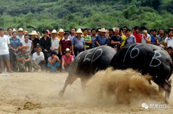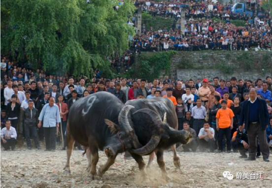 ▲ 斗牛之牛,都是專門精心飼養(yǎng)的,不從事耕地、拉車、推磨等勞作,均為雄性水牛,分為寬角、窄角兩個級別。斗牛賽制,先為淘汰賽,決斗時改為單循環(huán)賽,最后勝出者為年度牛王。斗牛場面十分慘烈,動人心魄,觀眾少則數(shù)百,多則數(shù)萬。
