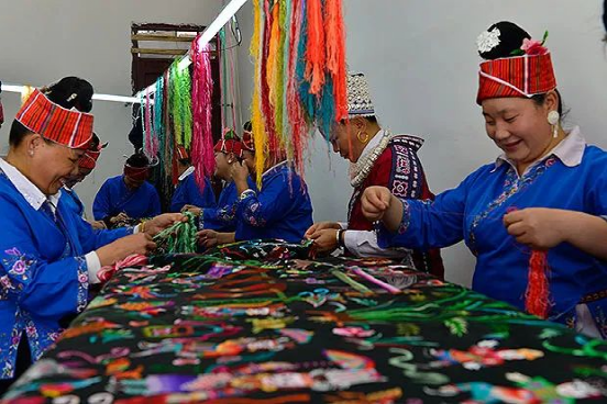 《錦繡臺(tái)江》長22米、寬0.9米,由臺(tái)江縣100余名繡娘用了一個(gè)多月時(shí)間共同繡制完成,是目前臺(tái)江苗族刺繡中最長、最精美的作品