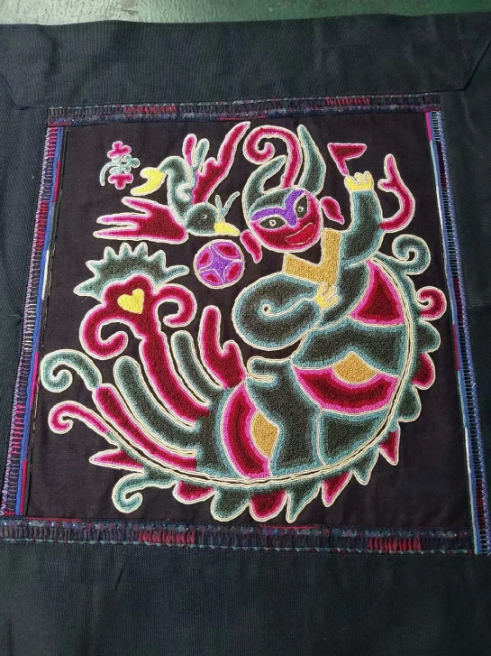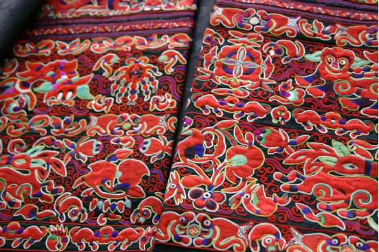 貴州臺(tái)江苗繡是苗族刺繡中最具典型意義的民間藝術(shù)品之一,一針一線,都是東方審美的極致體現(xiàn)。極為大膽的配色,夸張生動(dòng)的圖案,對稱和諧的紋樣,成就了古樸精致又絢麗多彩的苗繡。每一個(gè)繡娘都有自己的見解,她們借物隨心,見山繡山,見水繡水,花樣百出,栩栩如生!