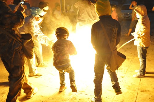 不到黃昏,鞭炮聲就響起來了。新生兒的父親點燃火把后,孩子們迫不及待地拿著小火把和松明粉,跑來跑去燒新生兒的的各種親戚,大人們樂呵呵地接受孩子們噴灑過來的火焰,并一致說著很吉祥的祈愿祝福語。“從此晦氣不在嘍!”、“一年更比一年好呀!”、“紅紅火火又一年”。男女老少在火把樹下吃喝玩樂,其樂融融。糖、炒蠶豆、梨、蘋果等被大家傳來傳去,新生父親挨個向親友敬酒。親友鄰居喝著喜酒,一致祝福新生兒安康成長,將來富貴吉祥。