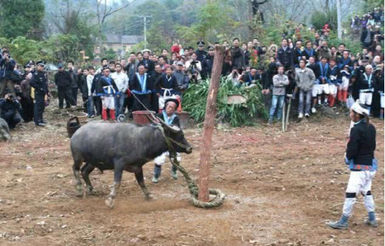 砍牛、打銅鼓是白褲瑤為死者舉行葬禮的儀式,整個(gè)葬禮悲壯、肅穆,祭祀場(chǎng)面氣氛凝重莊嚴(yán),這種傳統(tǒng)送喪習(xí)俗,既是表達(dá)遺屬對(duì)死者的悼念,也是一項(xiàng)眾人共同的祭祖活動(dòng),銅鼓、皮鼓,是葬禮活動(dòng)的主要打擊樂器。