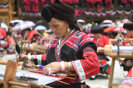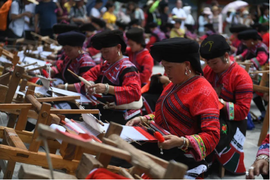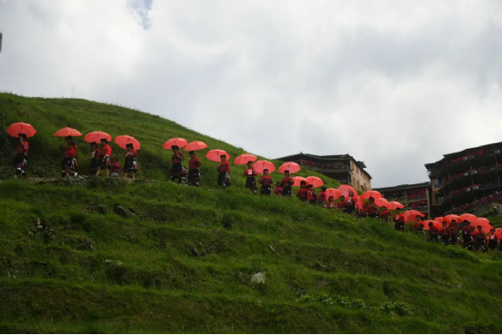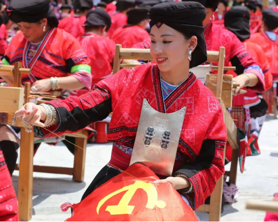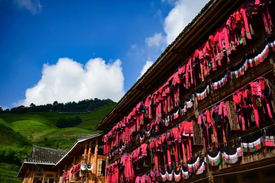 2014年,龍勝瑤族服飾(紅瑤服飾)以其精湛的手工藝和文化底蘊入選國家級非物質(zhì)文化遺產(chǎn)代表性項目名錄擴展項目名錄。如今的“曬衣節(jié)”已不僅是紅瑤的傳統(tǒng)佳節(jié),“農(nóng)歷六月六,廣西龍脊看紅衣”等曬衣節(jié)系列活動已成為桂林山水游的一張名片,讓各地游客充分感受多姿多彩的民族風(fēng)情。紅瑤同胞們用自己獨特的方式,為中國共產(chǎn)黨成立100周年獻上自己的祝福。