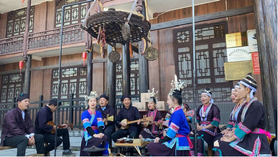 過年期間,各家各戶姓氏輪流過節(jié),親朋好友都會集中前往,最后到鼓樓坪唱歌跳舞慶祝侗年。——程陽八寨景區(qū)