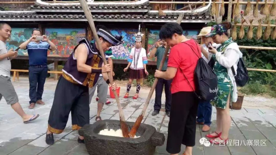 從程陽八寨民俗、民風(fēng)、勞作、競技、婚戀等元素著手,結(jié)合景區(qū)實(shí)景,展現(xiàn)侗族原生態(tài)生產(chǎn)生活風(fēng)情?!秸菟囍行?/p>