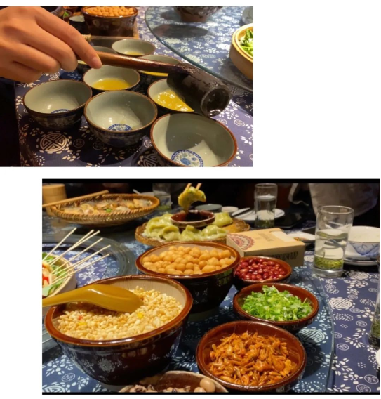 侗家人喜歡喝油茶,已有上千年的歷史。喝油茶,一般還配有糯米飯,油茶泡冷米飯和糯米飯是三江傳統(tǒng)喝法。因?yàn)槎弊迦耸朗来幼≡诟吆絽^(qū),侗族油茶能御寒防病,還有生津解渴、提神醒腦、解除疲勞等功效。因其味微苦,所以又被稱為“侗族咖啡”。