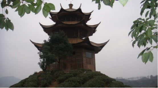 坐落在滿(mǎn)山茶園中的貢茶亭