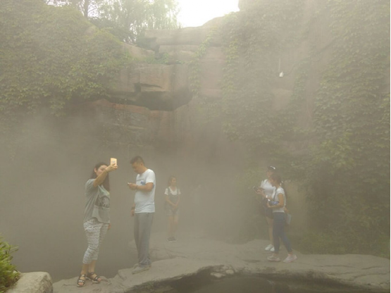 人們不期而遇的步伐、眼神和享受,心照不宣,現(xiàn)在人們重視外出活動,與山相隨,與花共舞,與自然接觸,如心靈瞬間注入水珠一般叮咚作響,無限的遐思似乎要占領整個世界,聽:人工假山中悠悠的吶喊聲和飛流直下的瀑布遙相呼應著,伴著一股股的霧氣、人流,如入仙境一般,云里霧里??矗汗珗@里站在花叢中的微笑與微笑相互對視著,靜謐中跳動的旋律和人在游途中溫馨的場景交織在一起,構成了一幅美麗的畫卷。
