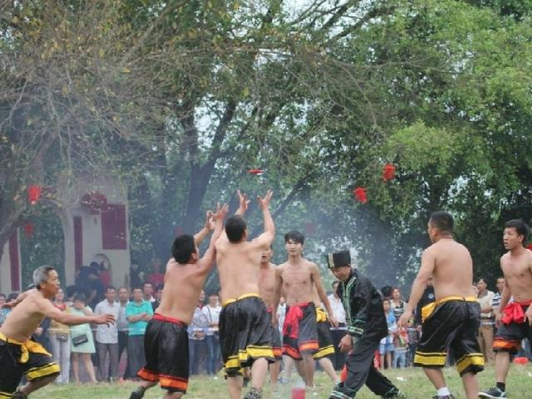 壯族花朝節(jié),是紀(jì)念百花仙子的壯族傳統(tǒng)民俗文化節(jié)日,流行于崇左市寧明、龍州等地,每年農(nóng)歷二月初二舉行。節(jié)日里,男女青年從四面八方匯集在長有高大木棉樹的地方對唱山歌,在真摯的歌聲中贈(zèng)花定情,拋擲繡球和互贈(zèng)禮物。日落時(shí)分,人們按照傳統(tǒng)習(xí)俗,從四周把繡球向木棉樹高枝拋去,掛到木棉樹上,以求百花仙子保佑愛情永結(jié)。