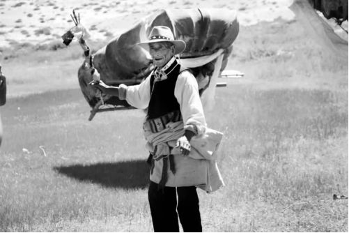 據(jù)悉,每次表演舞蹈時(shí),“阿熱”只能唱二、三首歌,唱久了因船夫們負(fù)重太多堅(jiān)持不了很長(zhǎng)時(shí)間??“汀肮巍钡捻懧暫芴貏e:船夫們舉雙手把船扶住,一支船槳從船夫的腰背上穿過,與背上的木質(zhì)滑輪撞擊后發(fā)出響聲。這響聲在一般跳“果諧”舞中感受不到,它有一種人與自然頑強(qiáng)抗?fàn)幍膫€(gè)性特點(diǎn)。阿熱”的基本舞步均取之于當(dāng)?shù)亍肮C”,具有靈活多變,頓地為節(jié)的特點(diǎn),而船夫們的“顫膝擺”等姿態(tài),更具有“高原之舟”—— —牦牛的特性。整個(gè)舞蹈既輕盈又凝重,別有一番情趣。