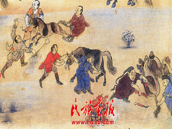 放牧遠(yuǎn)行,馬是重要的交通工具;嫁娶新人,要以駿馬為坐騎;宗教神話中,馬是神的代言者;草原盛會(huì),賽馬是必不可少的內(nèi)容;在蒙古族民間傳說(shuō)和歌謠中,對(duì)馬的贊頌更是比比皆是。馬是蒙古人日常生活最親密的伙伴,蒙古人有特別濃厚的戀馬情結(jié),這就是我們說(shuō)的“馬文化”現(xiàn)象。蒙古族的馬文化是在長(zhǎng)期生產(chǎn)生活中逐漸形成、演化、發(fā)展而來(lái)的。曾是軍事、交通運(yùn)輸、農(nóng)業(yè)生產(chǎn)等活動(dòng)的主要?jiǎng)恿Α?/p>