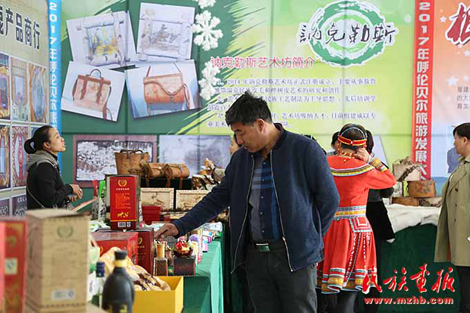 呼倫貝爾市旅游發(fā)展大會上,民族特色產(chǎn)品受到游客的歡迎