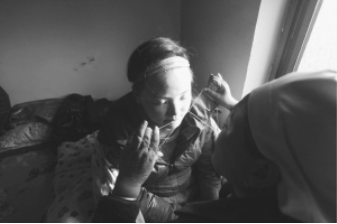 新娘出發(fā)前,在頭上蒙上一塊紅紗