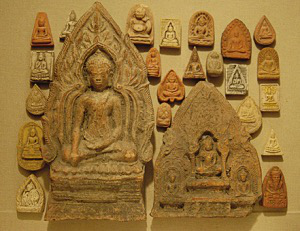 在泰國最北邊的城市清萊的一座古寺里,年長的僧人告訴我,在泰國,帕肯(“泰國擦擦”,泰語為“Phra-Kruang”,這個名詞在標(biāo)準(zhǔn)的泰文詞典里的解釋是:用于避兇消災(zāi)的小型佛像,作用相當(dāng)于護(hù)身符、祈愿物、供奉物。泰國的Phra-Kruang至今沒有一個公認(rèn)的中文名稱,既然“擦擦”是譯音,我便挑了兩個最接近泰語Phra-Kruang發(fā)音的字給它:帕肯)的使用方式是這樣的:最早是在修建寺廟的時候放入佛塔內(nèi),因?yàn)楣排量系膬?nèi)容全是佛像,經(jīng)過高僧們開光后放入塔內(nèi)有增加靈氣的作用。百姓通常是到寺廟請回自己需要的帕肯回家供奉,或者作為還愿,出資請寺廟制作一定數(shù)量的帕肯,供奉在寺廟、家中或者贈送親友。