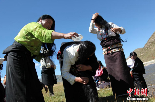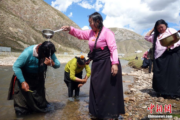 每年的夏末秋初,藏族同胞迎來(lái)一年一度的“沐浴節(jié)”。“沐浴節(jié)”,藏語(yǔ)稱(chēng)為“嘎瑪日吉”,為期7天。這項(xiàng)古老習(xí)俗已經(jīng)延續(xù)了800多年。西藏流傳民謠,“待到棄山星升起,清凈溫暖好沐浴。”也就是說(shuō),在“棄山星(金星)””照亮雪域高原的七天里,藏族民眾在星光照耀過(guò)的水流中沐浴,可祛除身體病痛、心理雜念,全年健康。