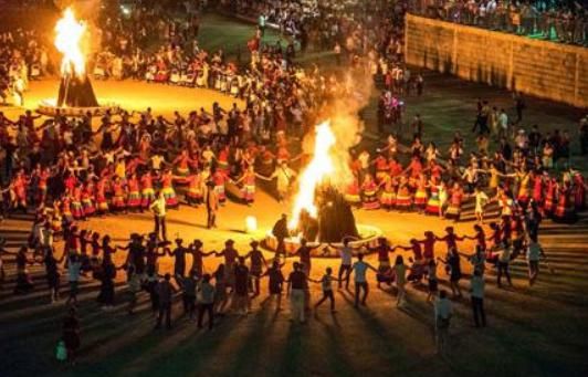 永仁縣彝族在同樣正月初二或初三奉行祭火,稱作開"火神會",涼山彝族把火塘看作是火神居住的神圣之地,嚴(yán)禁觸踏和跨越。而到了節(jié)日,各族男女青年點(diǎn)燃松木制成的火把,到村寨田間活動,邊走邊把松香撒向火把,或進(jìn)行集會,唱歌跳舞,或賽馬、斗牛、摔跤。近代,人們利用集會歡聚之機(jī),進(jìn)行社交或情人相會,并在節(jié)日開展商貿(mào)活動。
