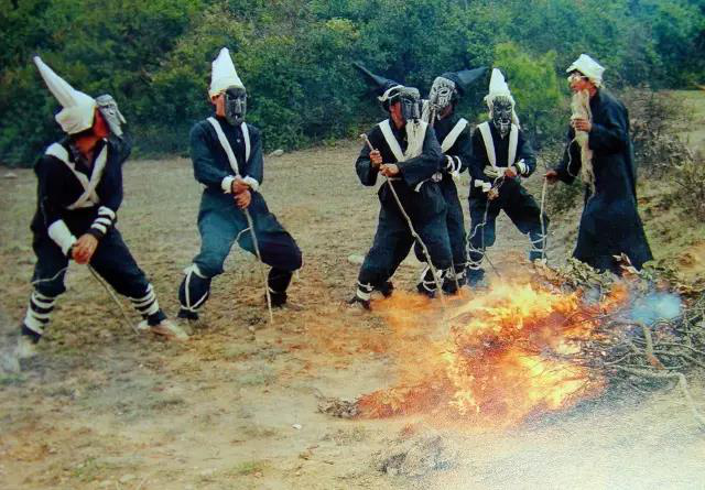 “撮泰吉”是彝語的稱謂,屬于彝族的一種古戲,譯意為“變人的戲”,是彝族重要的原始宗教信仰和民族風情習俗。每當春節(jié)期間正月初三至十五和六月二十四至二十六的火把節(jié)期間,貴州最高峰韭菜坪山脈一帶的赫章、威寧彝族同胞就會演出《撮泰吉》,舉行“掃火星”的驅邪納吉活動儀式,祈求火災、瘟疫遠離人們,讓平安幸福永遠伴隨彝家。演出的內容有祭祀祖先、民族遷徙、拓荒耕種、買賣牲畜、交配繁殖后代等,最后才逐戶為全寨掃除火星。