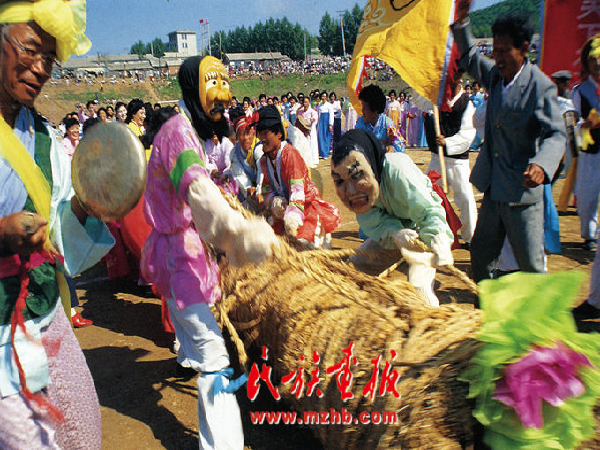 拔河是每年的農歷正月十五舉行,最早多在民族運動會上進行,以自然村為一個參賽單位,同臨近的村進行比賽。首先要準備拔河繩,繩有雄繩和雌繩之分,用稻草和藤條搓成。拔河繩有20?30厘米粗,長30?40米,由雄繩和雌繩兩股繩組成,然后進行拔河比賽,雌繩獲勝說明當年農業(yè)大豐收,因此雄繩有時會故意輸給雌繩。