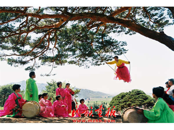 自從蕩秋千發(fā)展為民俗體育活動后,也多在運動會時作為一項比賽項目,并作為一種賽體力、比勇敢、爭上游的群眾性民俗游戲體育之花在朝鮮族女性中爭艷開放。