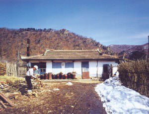 廡殿式磚瓦房在延邊朝鮮族村落中十分普遍。即兩個(gè)大山的“人”字形斜脊與正脊相連,形成4個(gè)屋面,正脊兩端...