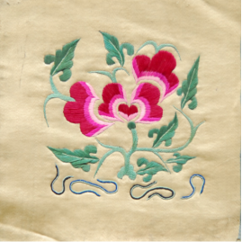 傳統(tǒng)意義上的滿族刺繡源于民間,流行于遼寧、吉林、黑龍江等滿族聚集地,屬于一種民間手工技藝。滿族民間刺繡,俗稱“針繡”、“扎花”、“繡花”,具有強(qiáng)烈的民族、地域特色,其造型夸張、粗獷、拙樸,色彩艷麗,冷暖對比強(qiáng)烈,構(gòu)圖細(xì)膩,情感樸實。