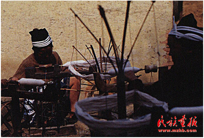 村里家家戶戶的門前,白褲瑤婦女不管是老年人還是青年人都在忙著紡線和畫著蠟畫。白褲瑤女子從小就跟著母親學(xué)紡線、織布、蠟畫、繡花。十二三歲就開始給自己縫制嫁妝,結(jié)婚后又要給孩子和丈夫做衣服。