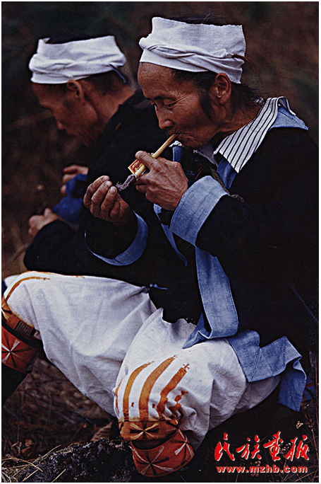 有人說,白褲瑤婦女的一生都在為做衣服而忙碌,這話一點(diǎn)不假。盡管現(xiàn)在我國服裝的樣式豐富多彩,面料五花八門,但是白褲瑤仍舊保持自己本民族的著裝習(xí)慣。婦女們每年自己種棉花、自己紡線、自己織布、自己印染、自己繡花、自己縫制衣服。