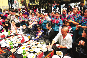 “中國紅河·元陽2009年哈尼梯田文化旅游節(jié)”上,哈尼族群眾擺下360桌、近0.5公里長的哈尼族長街宴,用最隆重的禮儀和風味美食,迎接來自海內外的賓客。